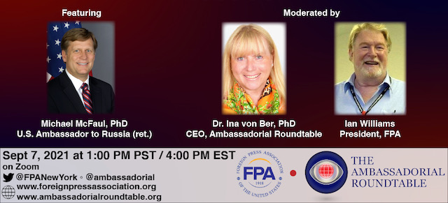 In a joint briefing presented by the Ambassadorial Roundtable and FPA, former U.S. Ambassador to Russia Michael McFaul will offer his assessment of the current US-RUSSIA-CHINA relations in a discussion with Dr.Ina von Ber, CEO Ambassadorial Roundtable and Ian Williams, President of the Foreign Press Association.